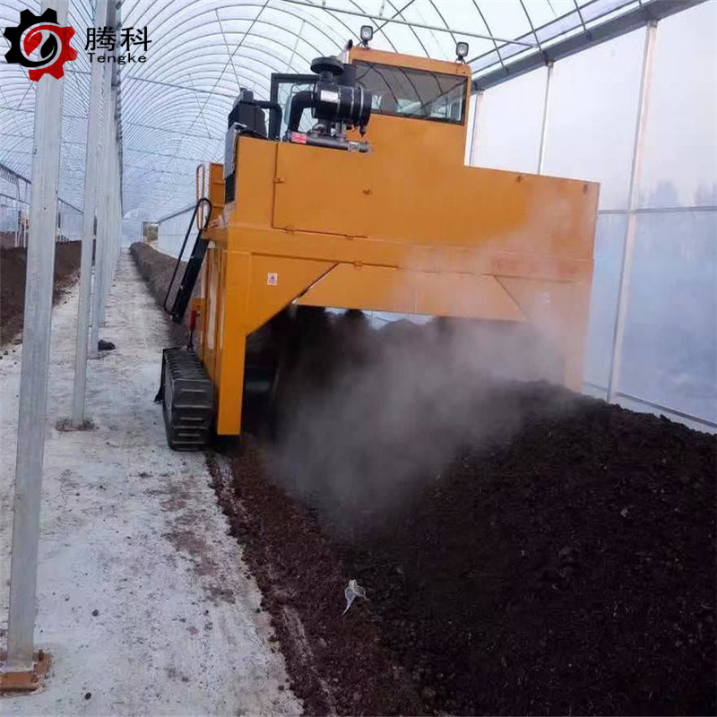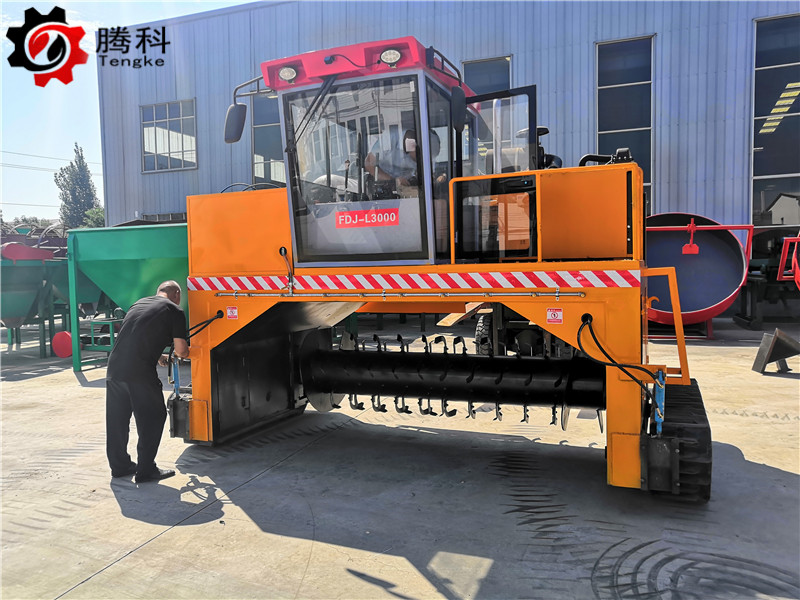 1有机肥履带式翻抛机设备。履带式翻堆车主要用于在条垛式发酵条件下对料堆进行翻抛供氧。采用履带式设计,可前进、倒退、转弯,由一人操控驾驶。