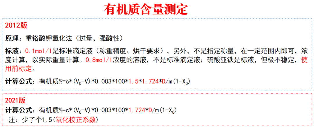 在新版中,有机质含量计算,删除了“氧化校正系数”,从本质上看,新版的≥30%指标,和老版的≥45%,没有区别;